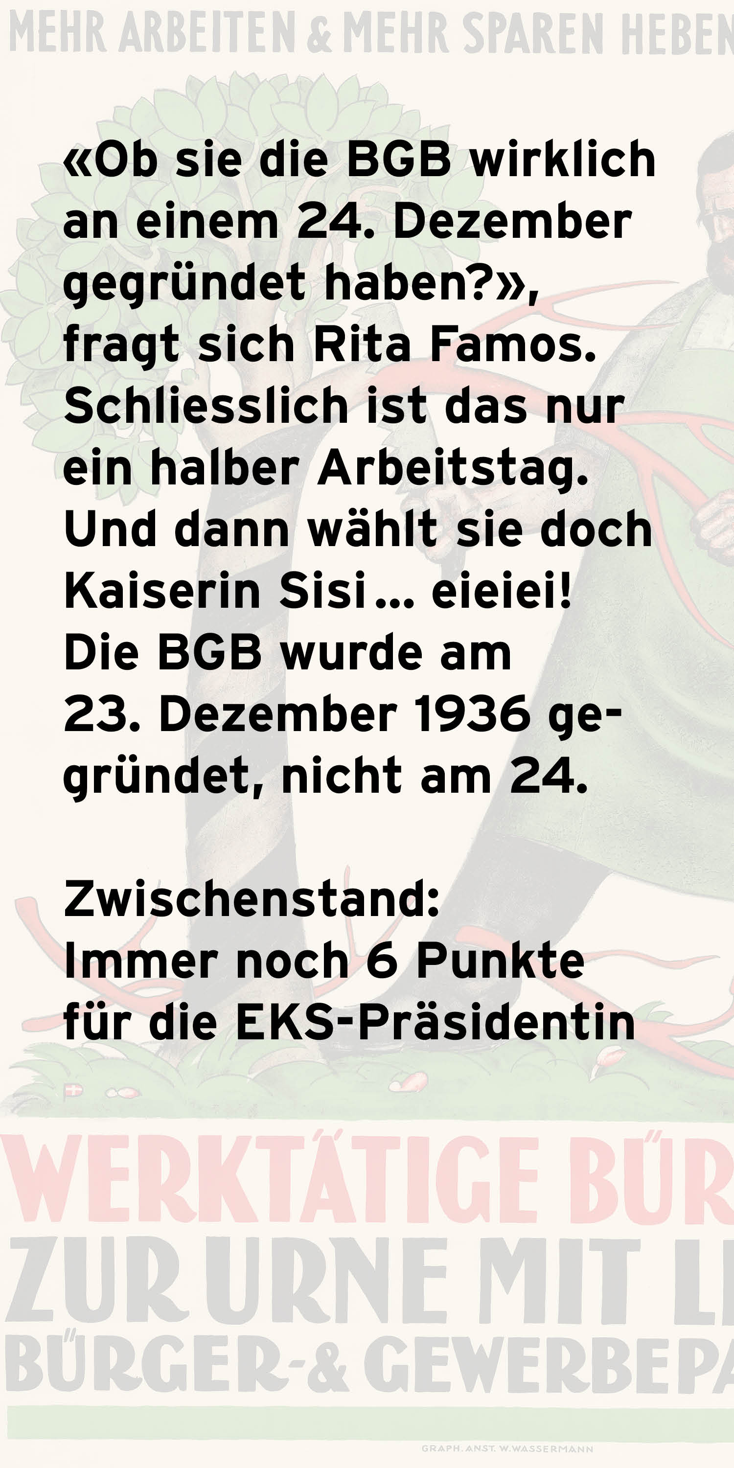 Haben Sie mehr Quizpunkte gesammelt als EKS-Präsidentin Rita Famos? War das Quiz zu leicht oder zu schwer? Teilen Sie es in den Kommentaren mit.