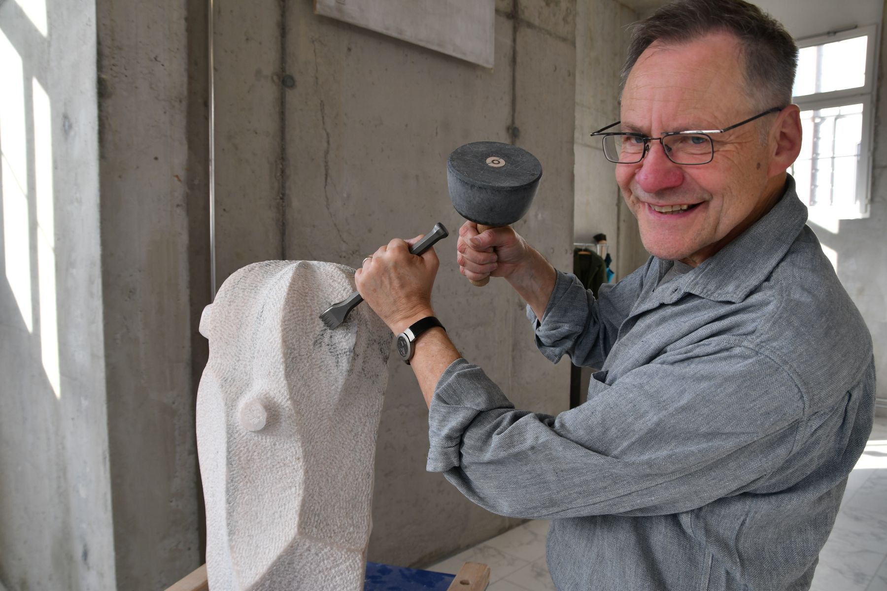 Er lädt regelmässig in sein Weinfelder Atelier ein, wo er das Zusammenspiel von Bildhauerei und Theologie am Beispiel seiner Skulpturen erläutert. Eingehend darlegen möchte er das im April anlässlich eines zweiteiligen Workshops für Männer. Die Teilnehmer werden sich dabei von biblischen Texten inspirieren lassen und versuchen, zunächst mit Ton und dann mit Stein arbeitend, auf den Spuren der Heiligen Schrift das Geheimnis der Schöpfung Gottes mit persönlichen Glaubenserfahrungen in Verbindung zu bringen. Diese Erfahrungen mit Augen, Ohren, Hand und Herz sollen die Grundlage für neue Erkenntnisse sein.