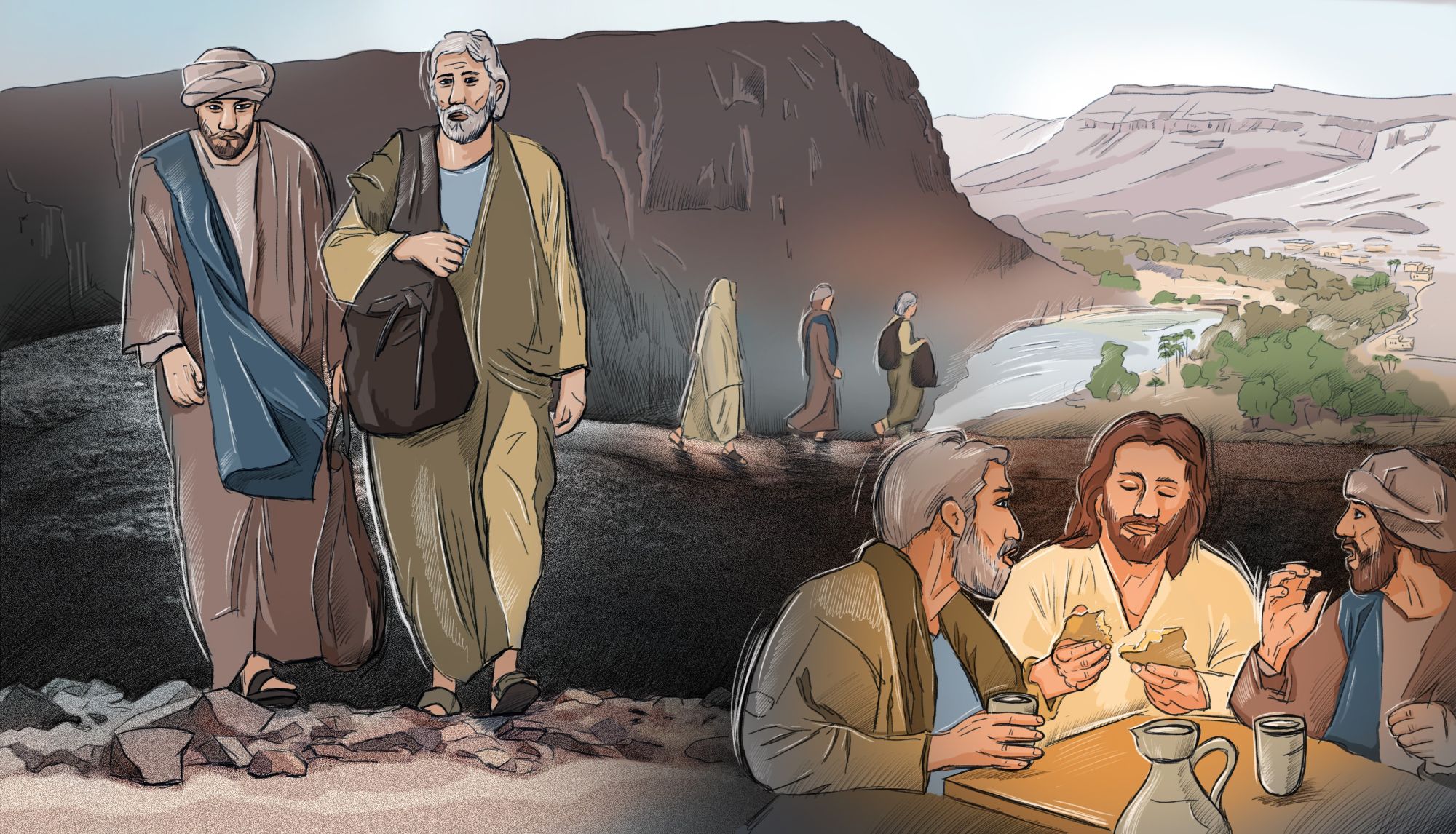 Da erzählten auch die beiden Jünger aus Emmaus ihre Geschichte, wie Jesus unterwegs mit ihnen gesprochen hatte und wie sie ihn erkannt hatten, als er das Brot brach. (Lukas 24,28–34)
